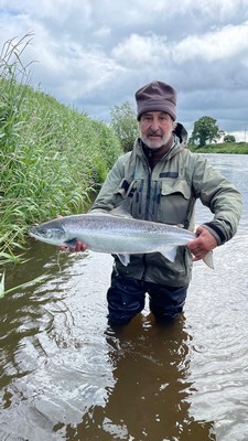 En ce qui nous concerne, heureusement nous n’avons pas eu à subir ces restrictions sur la SUIR car cette rivière est principalement alimentée par des sources et des affluents aux eaux plus fraîches descendant des montagnes avoisinantes. En temps normal, cette rivière est sujette en moyenne à 6 ou 7 petites crues pendant la saison de pêche (17 mars-3 septembre) et ces montées souvent peu importantes des niveaux d’eau permettent à chaque fois aux saumons atlantiques attendant patiemment dans les eaux saumâtres à la limite de la marée de commencer à entamer leur lente remontée vers leurs frayères. Pendant 2025, la SUIR n’a été témoin que de 3 crues, au demeurant modestes, mais qui ont néanmoins permis aux « saumoniers » présents sur mes parcours de pêche privés durant ces périodes de capturer un nombre appréciable de beaux saumons bien frais entre 10 et 18 livres (voir photos).